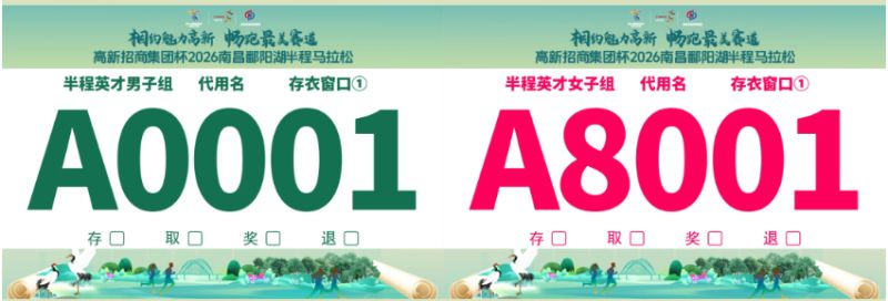 半程马拉松:每人两块号码布【一块大号码布(含芯片)、一块小号码布(存包用)】