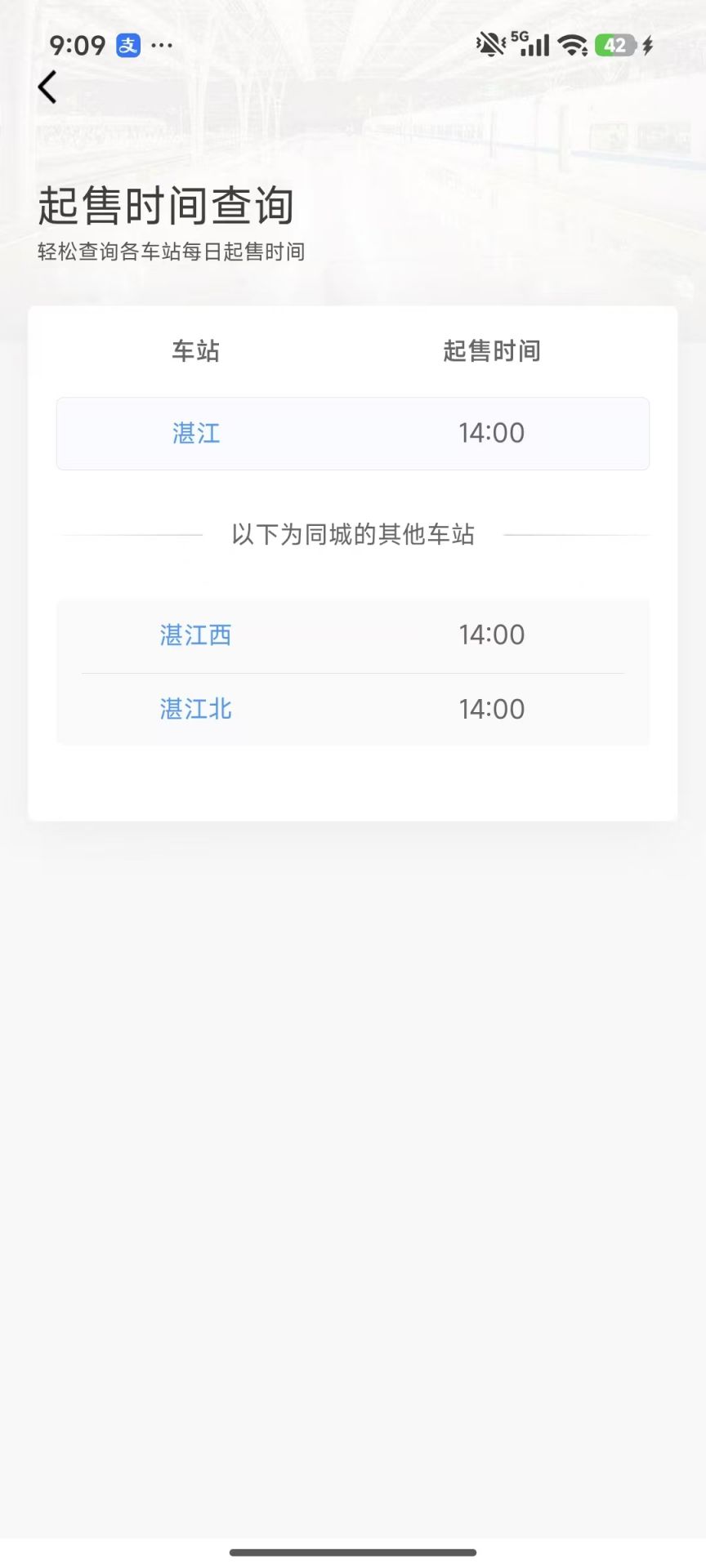 湛江车站开售时间