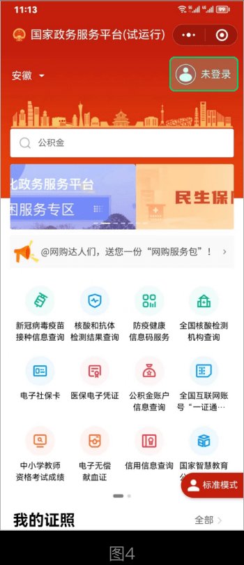 ➤步骤5:登录完成后,在我的证照一栏,点进“全部”,进入我的证照页面(图5)