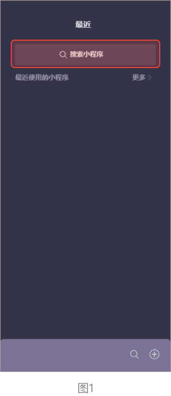 ➤步骤1:微信页面下拉进入小程序页面,点击“搜索小程序”,进入搜索页面(图1)